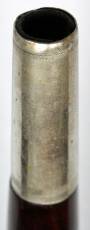 Diese Seite bearbeiten Links hierher Inhaltsverzeichnis Objekt-Nr. 2010-235 George Cloos, New York / USA Konische Pfeife in As Modell CROSBY 1. Hälfte 20. Jhdt * Erläuterungen zum Inventar siehe Legende Objekt-Nr. 2010-235 George Cloos, New York / USA Konische Pfeife in As Modell CROSBY 1. Hälfte 20. Jhdt Konstruktion: Palisander, lackiert. 1teilig. Konische Bohrung (?). Langgezogene Garnituren aus Neusilber an beiden Rohrenden, mit je zwei schraffierten Zierringen. 6 Grifflöcher von unterschiedlicher Grösse. Masse: Lt 43.4 / Ls 34.0 / Dm 11.5 (unteres Rohrende) / ML 10.7 x 9.3 / A1 (gegriffen Cis) = ca. 450 Hz Signatur: / GEO. CLOOS / (Monogramm) GC / CROSBY / Zustand: 2 = Gebrauchsspuren; Stimmzapfen sitzt fest Spieleigenschaften: 2 = heller, schneidender Klang. Schwierige Intonation Seltenheit: 2 Hersteller: George Cloos (1836 – 1910) kam als deutscher Zimmermann nach Brooklin /New York, wo er sich ab ca. 1862 dem Blasinstrumentenbau widmete, ab 1900 zusammen mit seinen Söhnen Frederick und William. 1946 Übernahme durch die Firma Penzel & Müller, in Funktion bis 1951. Cloos produzierte u.a. das seit ca. 1880 in den zivilen ‚fife & drum’-Kreisen wegen seiner Spieleigenschaften beliebte konisch gebohrte Pfeifen-Modell ‚Crosby’, benannt nach einem Modell des Pfeifenbauers Walter Crosby, Boston (1829 – 1872). (Externe Bearbeitung)